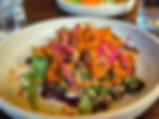 Miso pumpkin salad is a riot of flavours and textures with house-made labneh, plum jam, tricolour quinoa, crispy shallots and rocket. Sweet and savoury combine beautifully in a bowl to do your body good, with no carb crash to follow.